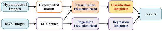 representations are processed separately by the classification prediction head to obtain the classification response of hyperspectral and RGB, and then combine them to