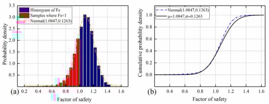 Table 12 shows the values for the water table level with assumed distribution functions for both slopes. Results obtained from our model with a uniform distribution are different from those determined by the other three distribution functions. Besides, the approximate failure probability is determined by the proposed method with the normal, lognormal, and triangular distribution functions, where the result with a normal distribution offers a more optimistic assessment of the landslide stability.