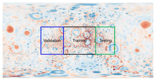A newly developed automatic detection method based on machine learning can also be used to determine the large extent characteristic of craters from the general feature of craters [22]. Deep learning, a branch of machine learning, has showed fast and accurate performance based on huge amounts of detected craters as labelled samples [23,24,25]. The authors carried out the crater identification on digital elevation map (DEM) images of the Moon and also used transfer learning method from the Moon-trained convolutional neural networks (CNNs) to identify the impact craters on Mercury [25]. The results showed the viability of using CNNs to determine the positions and sizes of craters from Lunar DEMs. However, some DEM anomalies may not be related to impact craters, which will inevitably lead to wrong results in the automatic identification process [25]. Furthermore, some craters cannot be showed on DEMs due to the effect of overburden. The high coverage and spatial resolution of gravity data acquired by the Gravity Recovery and Interior Laboratory (GRAIL) mission reveals the gravitational response of the distribution of impact craters, providing an opportunity to understand the lunar surface [26].