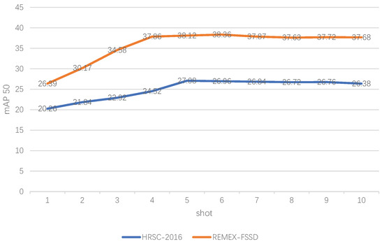 The performance of our methods on HRSC2016 and REMEX-FSSD. N-shot represents that each class uses N samples during training.