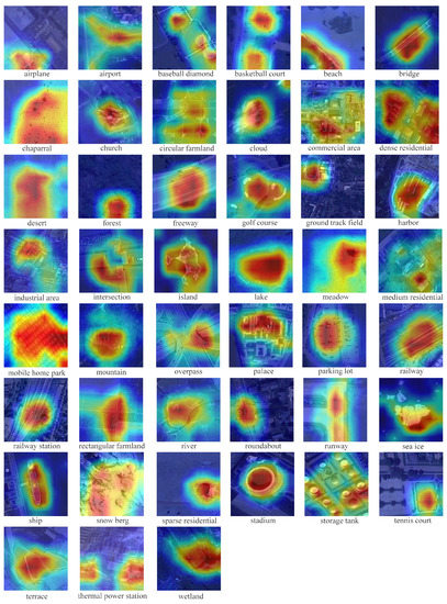 Figure 11. Heat maps generated by Grad-CAM. All samples are from the NWPU-RESISC45 dataset.