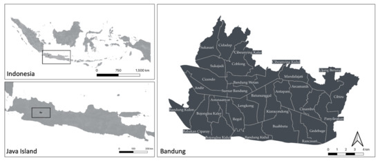 The research study area of Bandung, Indonesia.