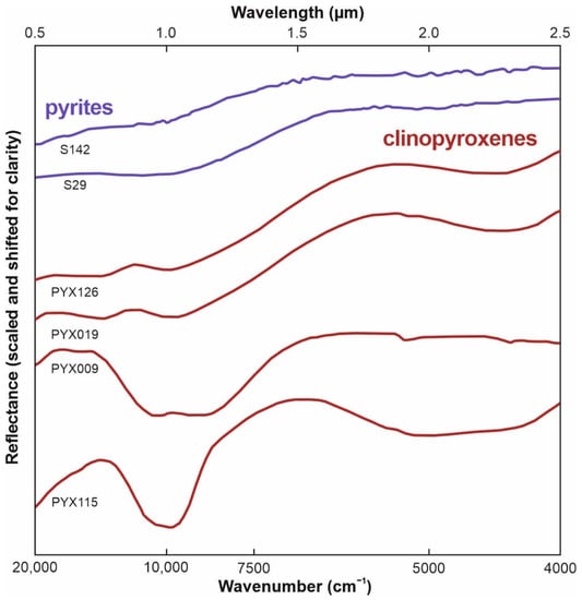 - Horgan, B.H.N.; Cloutis, E.A.; Mann, P.; Bell, J.F. Near-infrared spectra of ferrous mineral mixtures and methods for their identification in planetary surface spectra. Icarus 2014, 234, 132–154. [Google Scholar] [CrossRef]