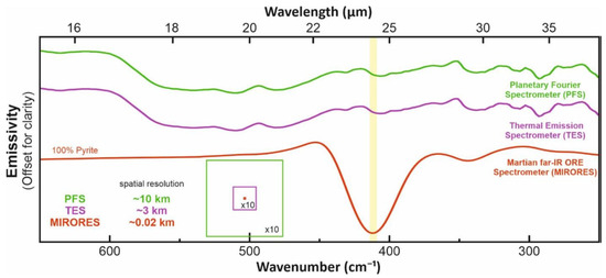 - Bandfield, J.L. Global mineral distributions on Mars. J. Geophys. Res. 2002, 107, 5042. [Google Scholar] [CrossRef]