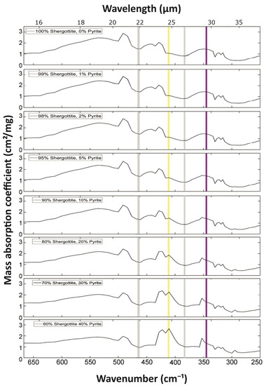 - Koike, C.; Tsuchiyama, A.; Shibai, H.; Suto, H.; Tanabé, T.; Chihara, H.; Sogawa, H.; Mouri, H.; Okada, K. Absorption spectra of Mg-rich Mg-Fe and Ca pyroxenes in the mid- and far-infrared regions. Astron. Astrophys. 2000, 363, 1115–1122. [Google Scholar]