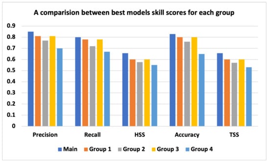 A comparison between best model skill scores for each group.