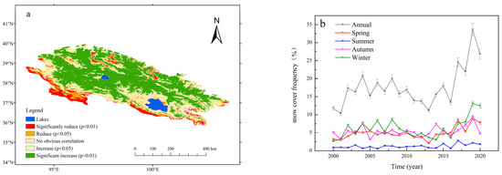 - Wang, X.; Wu, C.; Wang, H.; Gonsamo, A.; Liu, Z. No evidence of widespread decline of snow cover on the Tibetan Plateau over 2000–2015. Sci. Rep. 2017, 7, 14645. [Google Scholar] [CrossRef]