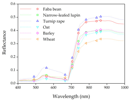 Figure 2. Spectral reflectance of the six crop species used in the study.