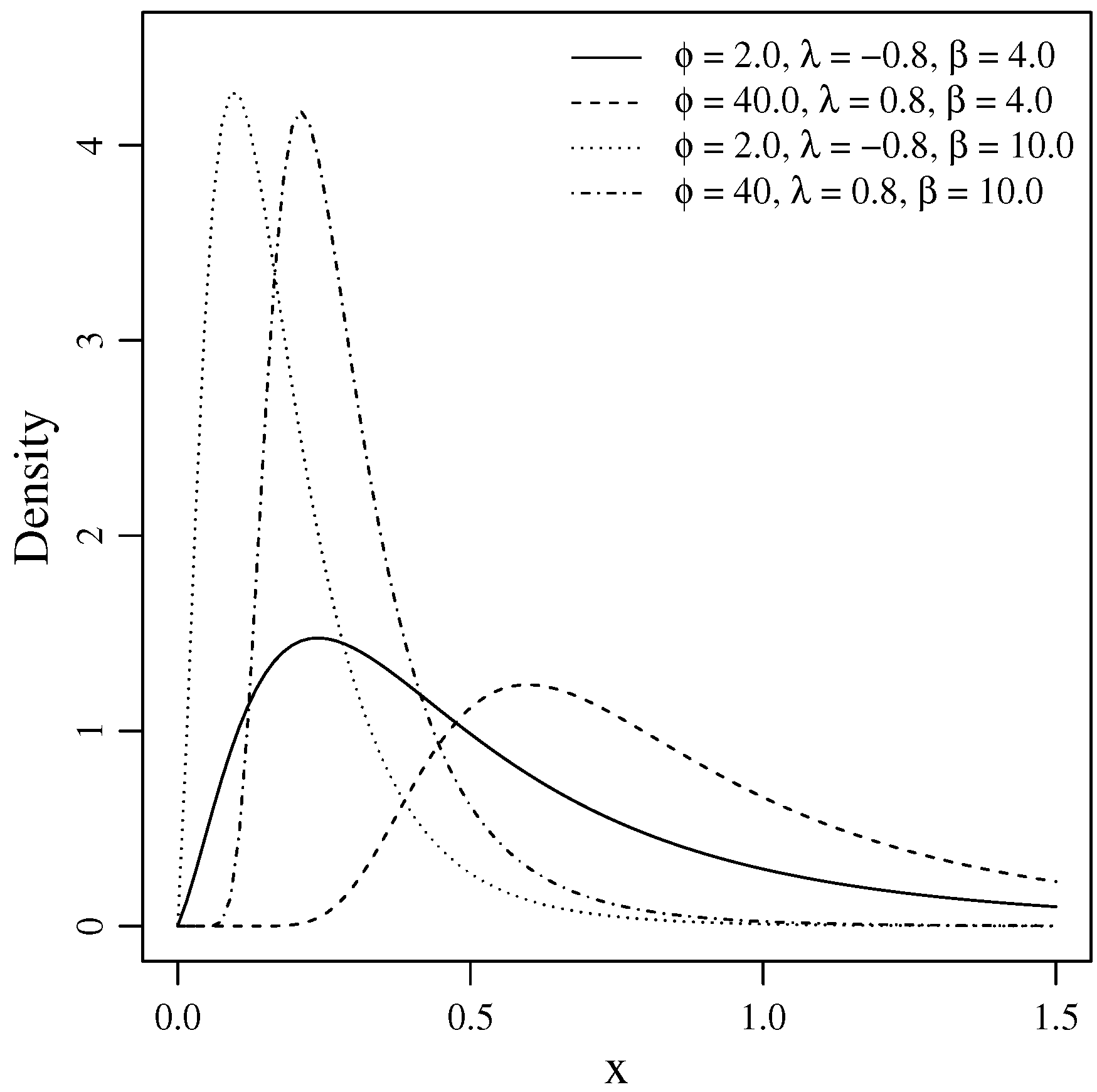 - McDonald, J.B.; Xu, Y.J. A generalization of the beta distribution with applications. J. Econ. 1995, 66, 133–152. [Google Scholar] [CrossRef]