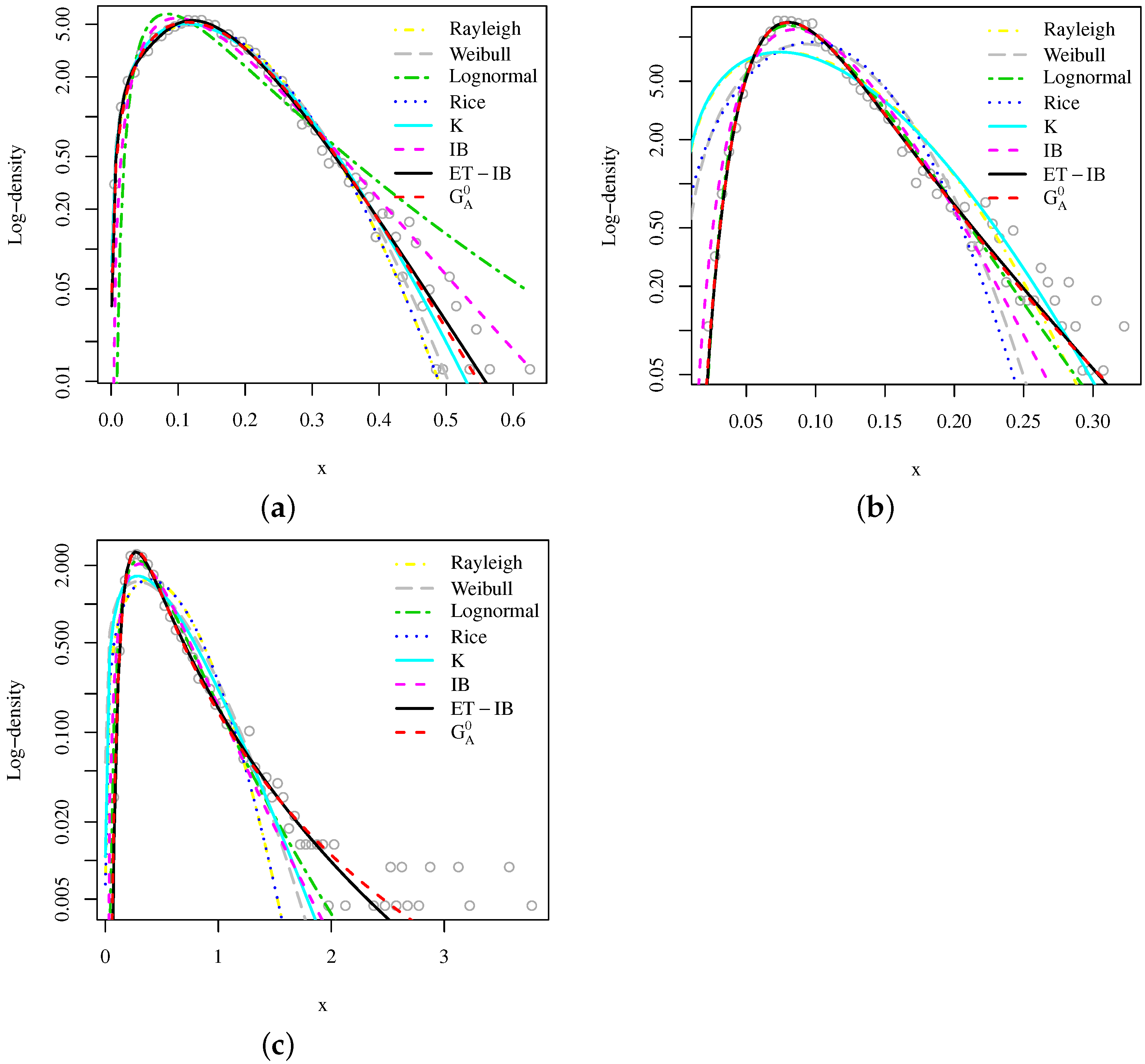 - Cordeiro, G.M.; Cintra, R.J.; Rêgo, L.C.; Nascimento, A.D.C. The gamma generalized normal distribution: A descriptor of SAR imagery. J. Comput. Appl. Math. 2019, 347, 257–272. [Google Scholar]