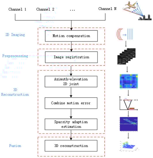 The proposed airborne array TomoSAR 3D imaging method is shown in Figure 5.