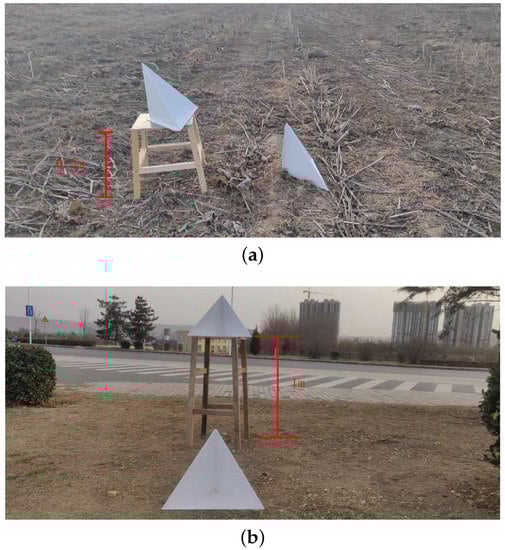 Target area reconstruction scene is a calibration field with multiple sets of layover points. The SAR image is shown in Figure 11, wherein the highlighted strong scattering points are the calibration points. Four strong scattering points are located on a flat field. Figure 12 shows the physical drawing of layover scalers.