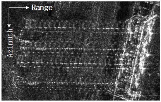 Airborne array tomographic synthetic aperture radar (TomoSAR) imaging technology is a major breakthrough, which can obtain the elevation information of layover scenes, such as high mountains and layover buildings []. Owing to its advantage that three-dimensional (3D) information can be obtained by a single pass, it shows great application prospects in the 3D application field. In addition, it plays an important role in SAR imaging applications, such as in the field of military reconnaissance [], topographic surveying [], resource exploration [], environmental monitoring [], crop detection [,], and other applications [,,,].