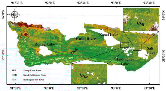 The study region (Figure 1a), is located in the northeastern TP. Administratively, it belongs to Zhidoi County, Qinghai Province. The topography is high in the west and low in the east, with an average elevation of about 4785 m a.s.l. In the region, four lakes, including Zonag Lake, Kusai Lake, Haidingnor Lake and Salt Lake, are distributed from west to east. The division of the catchments are shown in Figure 1b. The soil is not fully developed in this area and is mainly composed of stone and sand. The main forms of vegetation in the study region are alpine meadow, alpine steppe and alpine desert [].