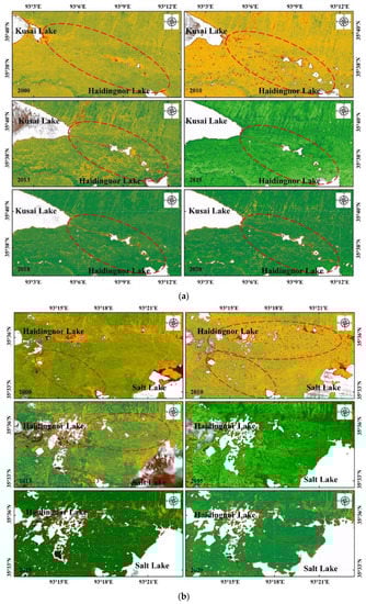 - Li, H.; Mao, D.; Li, X.; Wang, Z.; Wang, C. Monitoring 40-Year Lake Area Changes of the Qaidam Basin, Tibetan Plateau, Using Landsat Time Series. Remote Sens. 2019, 11, 343. [Google Scholar] [CrossRef] [Green Version]
