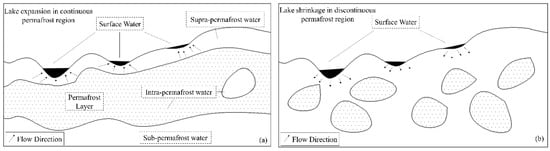 Changes of lakes in (a) continuous permafrost region and (b) discontinuous permafrost.