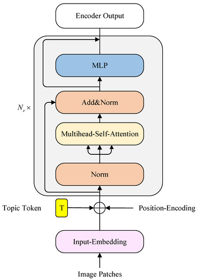After adding the topic token in image patch features, it is necessary to add position encoding to represent the sequence order. Thus, the input of the encoder can be written as: