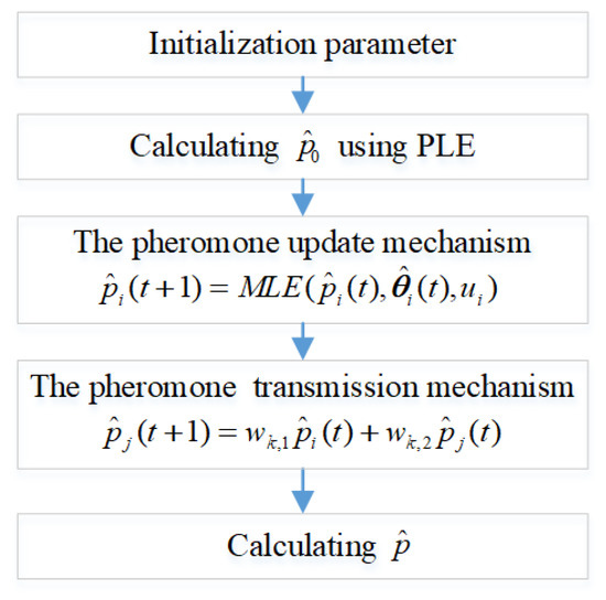- Based on the pheromone injection mechanism, each UAV uses MLE to self-correct to obtain the next moment estimate ;