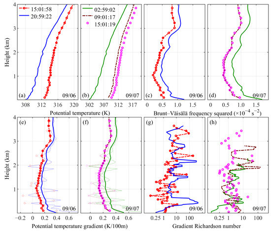 Similarly, the method for estimating is mainly suitable for the well-mixed area of CBL during the daytime; thus, the restrictions for using this method in near-surface detection are stricter. For the rest of the time when temperature stratifications are stable, is able to overestimate results from the small variances of potential temperature fluctuations.