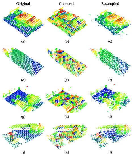 Downsampling is a standard operation in 3D point clouds [,]. Typically, there are two places where one might like to downsample. The first is downsampling a point cloud before inputting it into the network. Deep learning networks for point clouds usually take a set number of points as the input; the problem of context versus resolution is critical.