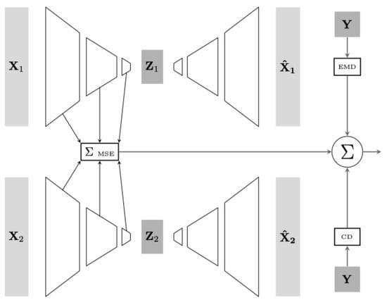 The following sections examine the effect of loss functions in 3D point cloud applications. In 2D data, the mean squared error and the binary cross-entropy are the primary reconstruction loss functions []. However, these cannot be used directly with 3D points because of permutation invariance. Both mean squared error and binary cross-entropy require a one-to-one correspondence between the prediction elements and the ground truth.