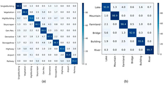 - The OpenSARUrban [14] dataset consists of 10 categories of urban scene images collected from Sentinel-1; its scene images cover 21 major cities in China. Each category contains about 40 to 2000 images with a size of 100 × 100 pixels, and the resolution of the images is about 20 m;