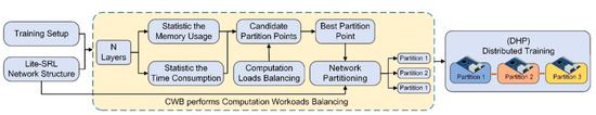 The process of CWB searching for the best partition point is formally presented in Algorithm 2. After network partitioning, each partition is assigned to the DHP system for distributed training. The detailed implementation of CWB is recorded in Figure 13.