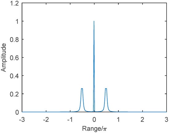 From (13), it can be found that, in the FFT result of the Bessel function, there will be a null at zero frequency and a pair of symmetrically distributed narrowband spectrum shift components at , which has no relation with the elevation . Therefore, the spectrum shift by equals the effect by the square of Bessel function. The square of Bessel function is shown in Figure 2. It will exhibit symmetric spectral components at after FFT. According to [], the frequency shift can be eliminated through Hilbert transformation, so the echo signal is firstly processed through Hilbert transformation before the FFT, then the azimuth information of the scatterer is obtained.