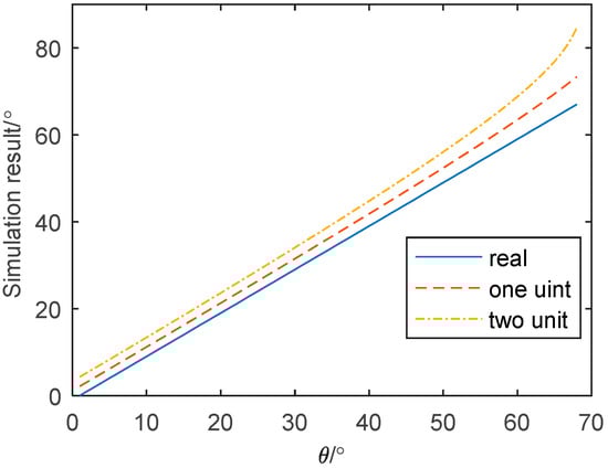 where is the number of spatial search points and , is the elevation resolution. The number of the target must be known in advance for MUSIC algorithm, and the number of the OAM mode needs to be more than the target scatterer number []. Thus, the number of the array elements is assumed one more than the number of target , then it yields: