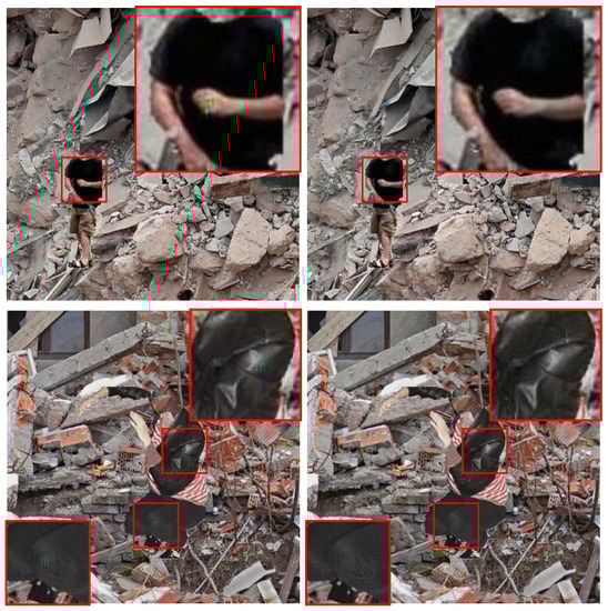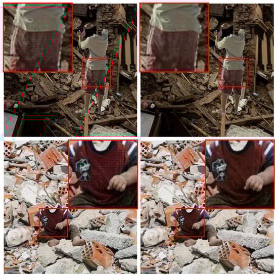 Although the LIP dataset was not designed for image composition, we can leverage it to composite various victim images. Different from previous papers that copy and paste a complete object instance [,], we choose to paste human body parts. By selecting specific body parts we are able to simulate victims partially buried by debris. For example, if we only select and paste the lower part of a person into a background image, we can imagine that the victim’s upper body was buried in the rubble, and only their lower body was exposed.