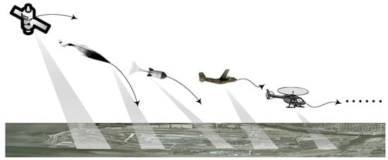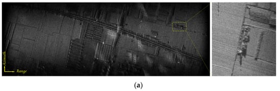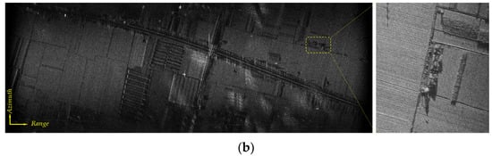 With the capability to obtain high-resolution microwave images of the observed scenarios regardless of meteorological and solar illumination conditions, synthetic aperture radar (SAR) has entered a golden age in remote sensing applications []. Generally, the high range resolution of SAR is obtained by performing pulse compression on the transmitted large-timewidth large-bandwidth modulation signal, such as the widely used linear frequency modulation signal, while the high azimuth resolution of SAR is obtained by performing match filtering on the virtual aperture synthesized by the real antennas at different positions. Differing from real-aperture radars, virtual array synthesis technology is the most significant feature of SAR, and its purpose is to break through the inverse limitation of real antennas to the resolution capability of conventional radars.
