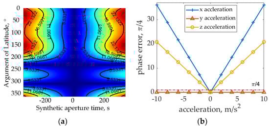 Phase error analysis for CF-SAR in specific cases. (a) Phase error of ‘stop-go’ assumption for spaceborne CF-SAR. (b) Phase error of ‘constant-baseline’ assumption for airborne CF-SAR.