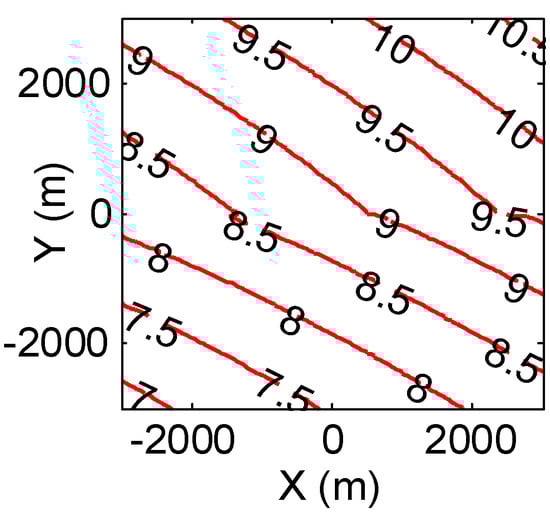 The gradient operation on Equation (12) with respect to denotes the direction that maximizes the change in delay time difference; then, it is the direction that minimizes the range resolution. Thus, we have: