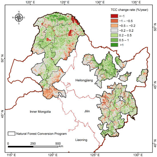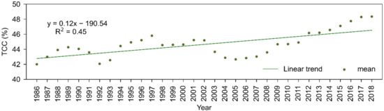 4.2. Spatio-Temporal Changes of Tree-Canopy Cover