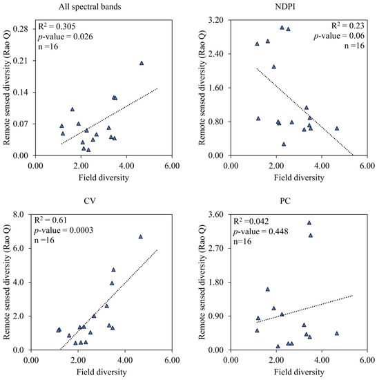 - Rocchini, D.; Ricotta, C.; Chiarucci, A. Using satellite imagery to assess plant species richness: The role of multispectral systems. Appl. Veg. Sci. 2007, 10, 325–331. [Google Scholar] [CrossRef]