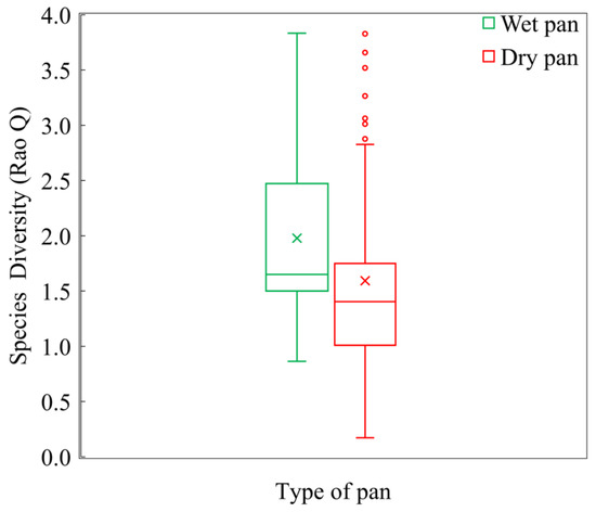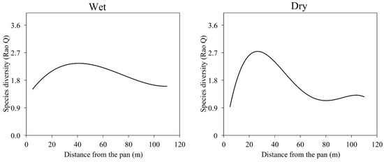 3.3. Vegetation Diversity and Distance from the Natural Pan