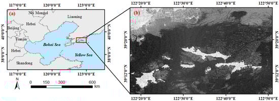Northern China has large-scale marine floating raft aquaculture areas, especially in the Bohai Sea and Yellow Sea [36]. In this study, the Changhai county, Liaoning province, China, was selected as the study area (Figure 3). Changhai county is located in the northern part of the Yellow Sea, between 122°13′ to 123°17′E and 38°55′ to 39°18′N. It has a coastline of 358.9 km and a sea area of 10,324 km2, with a water depth between 10 and 40 m [45]. Since Changhai county is far from the mainland, it is less likely to be affected by the pollution of mainland river runoff, factories, and mines. Thus, it is a typical FRA area and ideal for floating raft aquacultures of oysters, scallops, and other sea products.