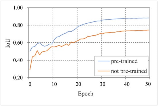Figure 9. IoU of the pre-trained and not pre-trained D-ResUnet model.