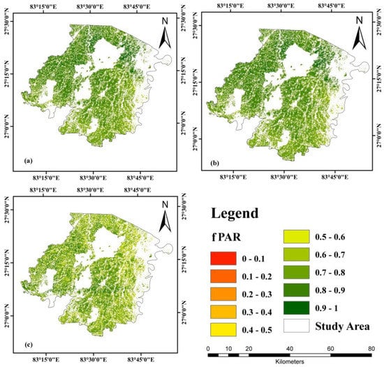 where, fPARmax, 0.950 and fPAR min, 0.001 are the maximum and minimum constant values of fPAR.