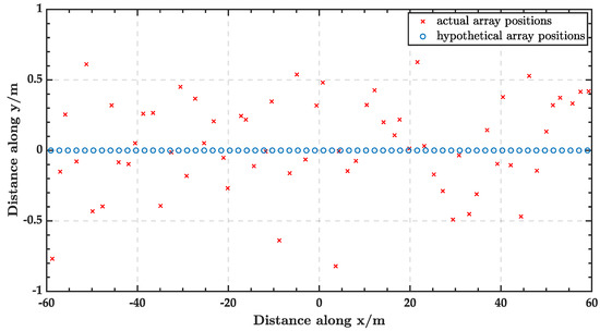 Figure 6. Hypothetical and actual sensor positions of a ULA with 64 elements.