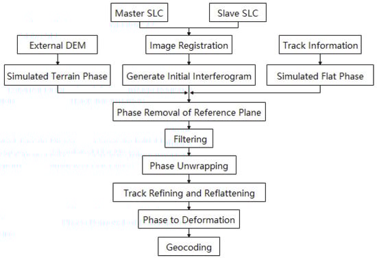 Differential interferometry analyzes the phase information, obtains the corresponding phase difference of two or more images and then processes it through the steps shown in Figure 2. Finally, the land displacements of the corresponding region are obtained, achieving observation at the cm or even mm level.