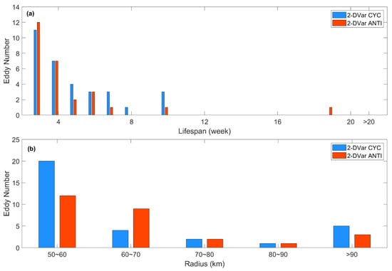 | Mean Radius (km) | CROCO Cyclonic Eddy | 2-DVar Cyclonic Eddy | CROCO Anticyclonic Eddy | 2-DVar Anticyclonic Eddy |