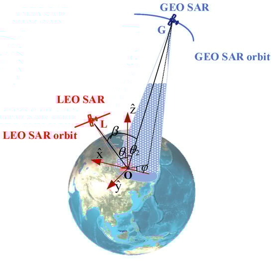 Schematic diagram when a GEO SAR and a LEO SAR observe the same target.