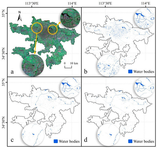 3.2. Performance Comparison of Various Water-Body-Mapping Methods