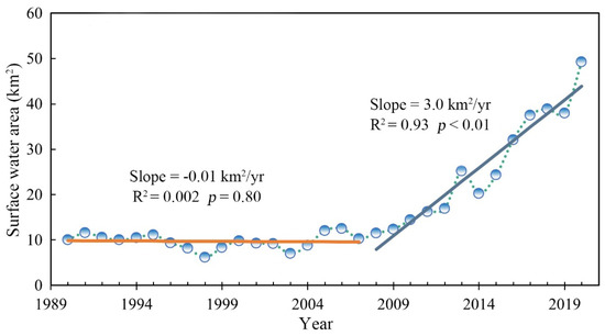 - Zhou, Y.; Dong, J.; Cui, Y.; Zhou, S.; Li, Z.; Wang, X.; Deng, X.; Zou, Z.; Xiao, X. Rapid surface water expansion due to increasing artificial reservoirs and aquaculture ponds in North China Plain. J. Hydrol. 2022, 608, 127637. [Google Scholar] [CrossRef]