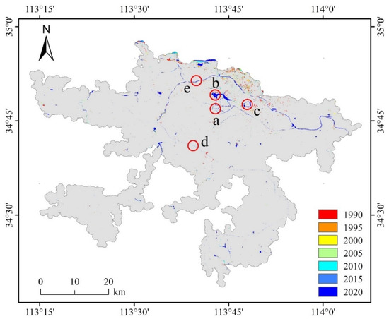 3.3. Temporal Changes in Urban Surface Water Bodies in Zhengzhou