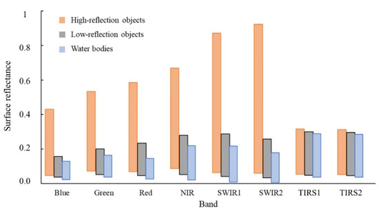| Season | Water (A) | High-Reflection Objects (B) | Difference (B–A) | Low-Reflection Objects (C) | Difference (C–A) |