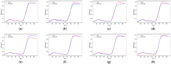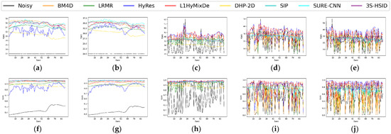 The denoising performance of the various algorithms cannot be fully evaluated from a single-band visualization analysis. Thus, we also analyzed the denoising results from different aspects, as shown in Figure 8, Figure 9, Figure 10 and Figure 11.