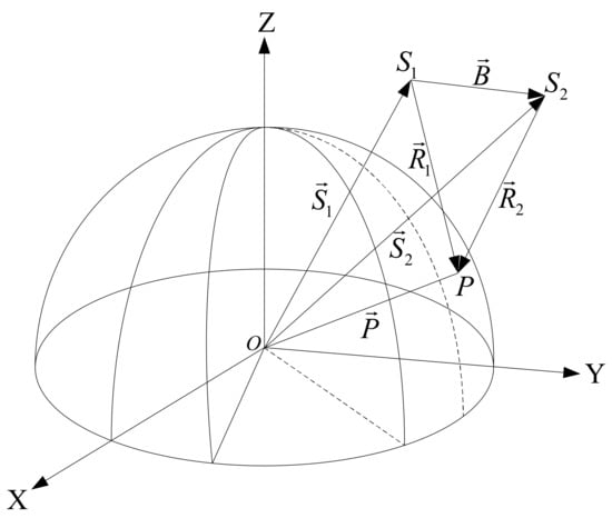 According to the geometric relationships of the interferometric SAR, the GCP can be expressed in O-XYZ coordinates as follows: