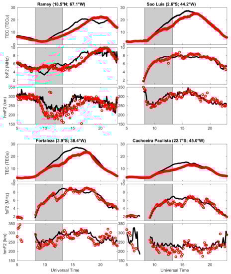 - Bravo, M.; Martínez-Ledesma, M.; Foppiano, A.; Urra, B.; Ovalle, E.; Villalobos, C.; Souza, J.; Carrasco, E.; Muñoz, P.R.; Tamblay, L.; et al. First Report of an Eclipse From Chilean Ionosonde Observations: Comparison with Total Electron Content Estimations and the Modeled Maximum Electron Concentration and Its Height. J. Geophys. Res. Space Phys. 2020, 125, e2020JA027923. [Google Scholar] [CrossRef]